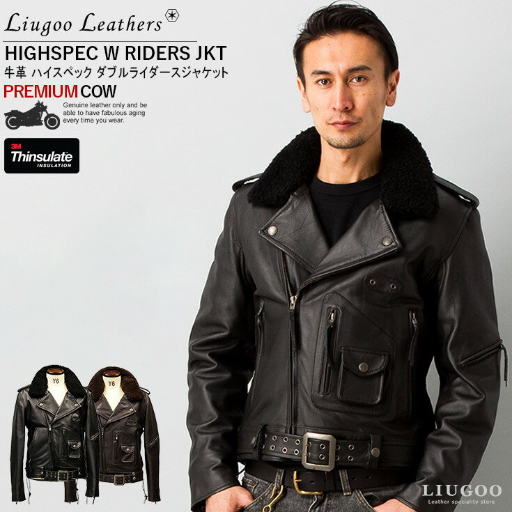 Liugoo Leathers 本革 高機能防寒仕様 襟ボアDポケットダブルライダースジャケット メンズ リューグーレザーズ DRD02C ダブルライダース ライダースジャケット レザージャケット 革ジャン 皮ジャン シングルライダース 本革ジャケット ブラック 黒 ジャケット アウター
