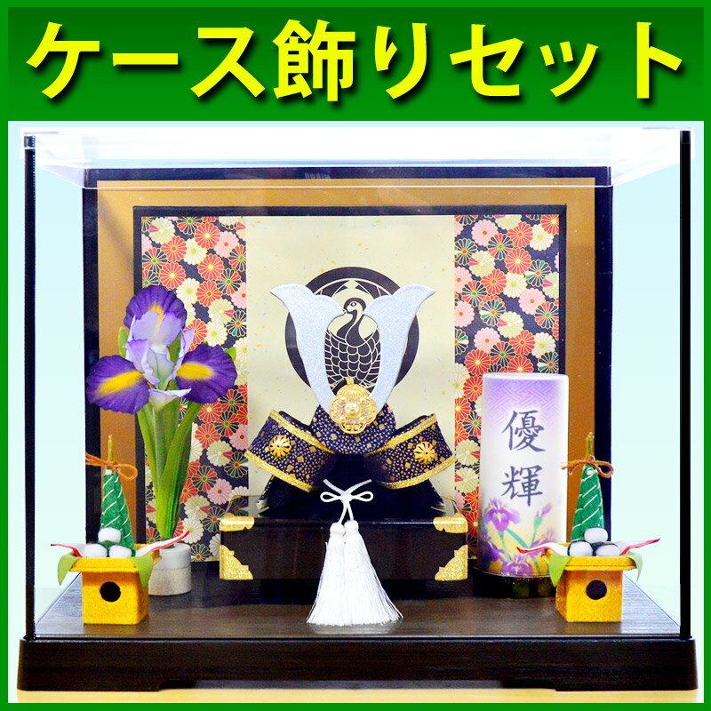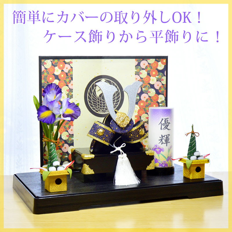 【簡易ケース飾りセット】金襴銀兜 '以下関連キーワード リュウコドウ 五月人形 コンパクト おしゃれ ちりめん 兜飾り 兜 ミニ 鯉のぼり 室内 おしゃれ こいのぼり ミニ 室内 置物 名前 札 木札 名前旗 桃久月